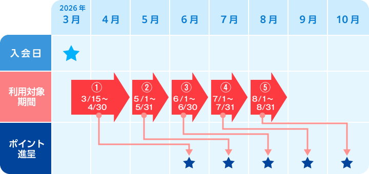 - 利用対象期間④入会日の4ヶ月後の1日~4ヶ月後の末日まで