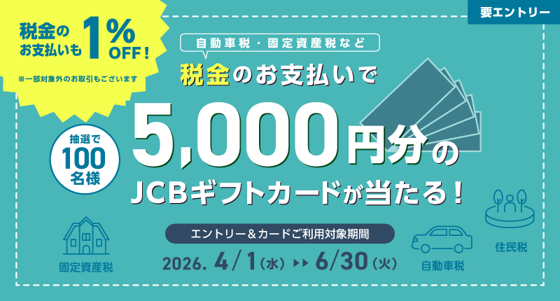 税金も1%OFF!税金のお支払いで5,000円分のJCBギフトカードが当たる!