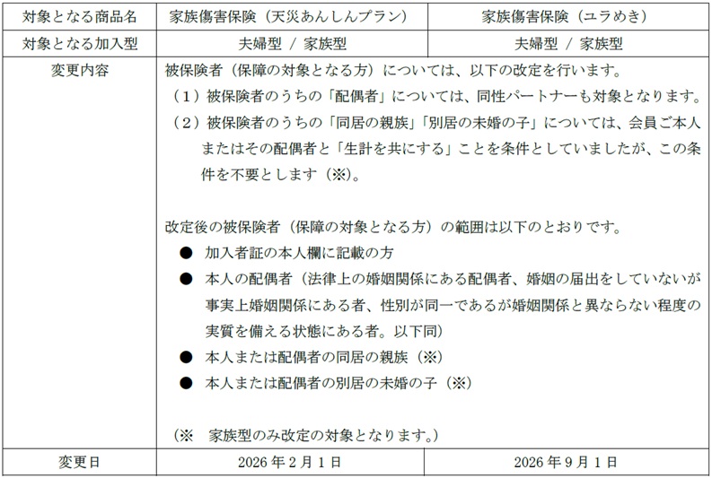 「天災あんしんプラン」および「ユラめき」の一部保障内容改定のお知らせ