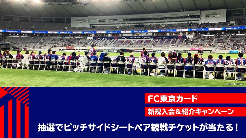 カードお申込み期間中にFC東京カードを新規で申込みのうえ、カードが発行されると、抽選で「10月5日(土)開催 サガン鳥栖戦」または「12月8日(日)開催 セレッソ大阪戦」のピッチサイドシートペア観戦チケットが当たります。(カードのお申込みに紹介を受ける必要はございません。)【カードお申込み期間】