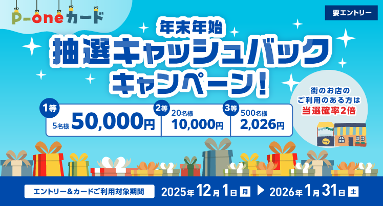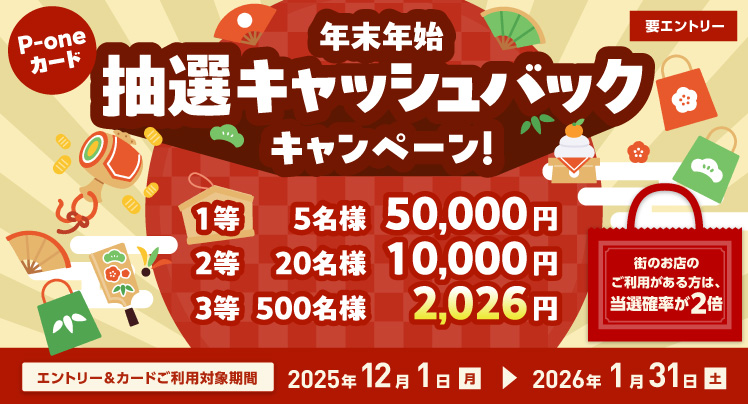 【P-oneカード限定】 年末年始抽選キャッシュバックキャンペーン!