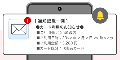 - ※利用通知サービスにおいて、お客様情報(カード番号・会員専用ネットサービスログインID・パスワード等)の入力を求めることはございません。